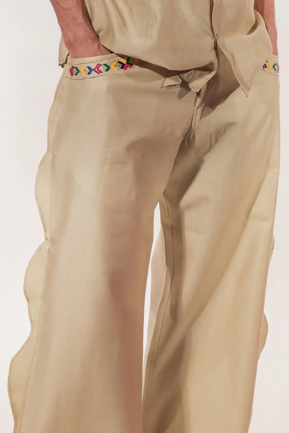 All our pieces are handcrafted in house at our studio. We ensure that our pieces are shot in standard light giving colors truest and nearest to our pieces. However, due to the intricacy of work involved in our pieces there may be minor variations in the color of the fabric, dyes, prints or embroideries of the product image you see on your screen and the actual product.